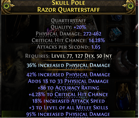 610 DPS FALLING THUNDER INVOKER MONK QUARTERSTAFF 4 CRIT CHANCE 16% ATTACK SPEED +3 MELEE SKILLS