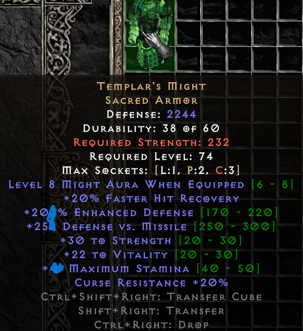 TEMPLER' MIGHT (CLEAN, 8 TO MIGHT AURA) ** SEASON 13 ** PD2 SC